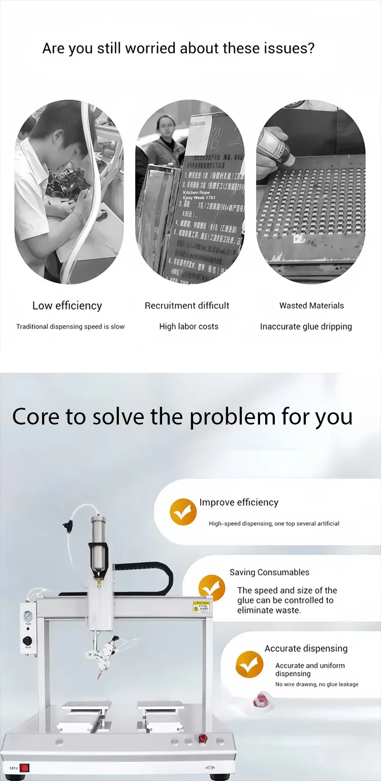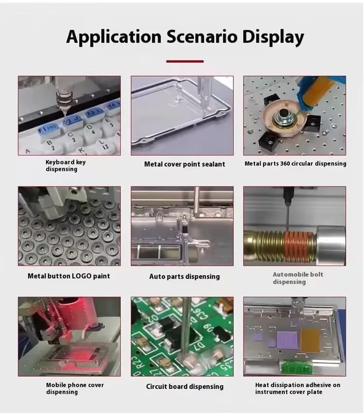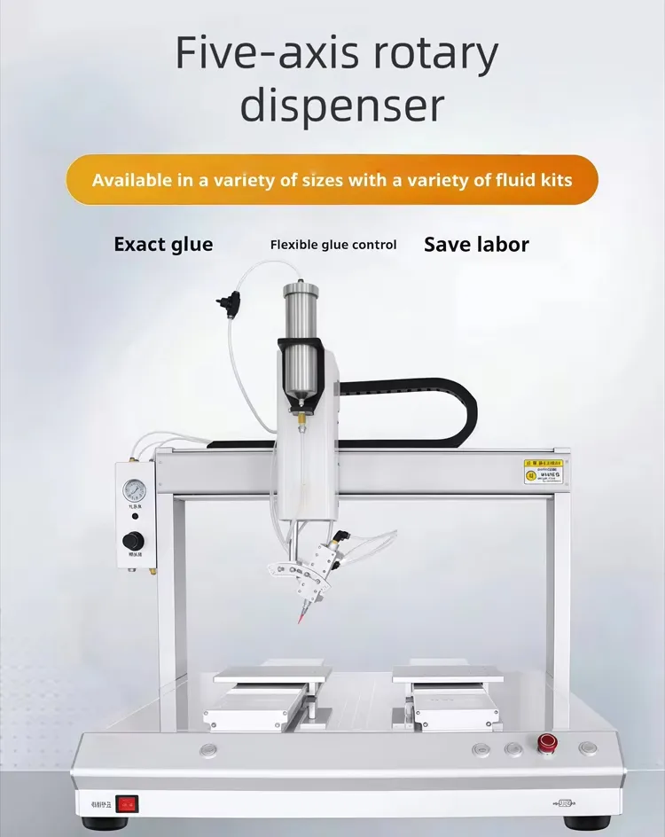 1. The 5 axis auto glue dispenser has the functions of drawing points, lines, arcs, circles, irregular curves, continuous tween input programs, etc., and can be three-dimensional dispensing;